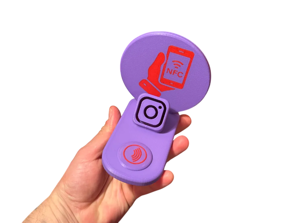 Ihre Kunden müssen ihr Smartphone lediglich an den NFC-Stand halten, um sofort zu Ihren Profilen auf Instagram, TikTok, Facebook oder PayPal zu gelangen. Kein mühsames Suchen oder Eingeben von Links mehr – alles mit einem einzigen Tap!